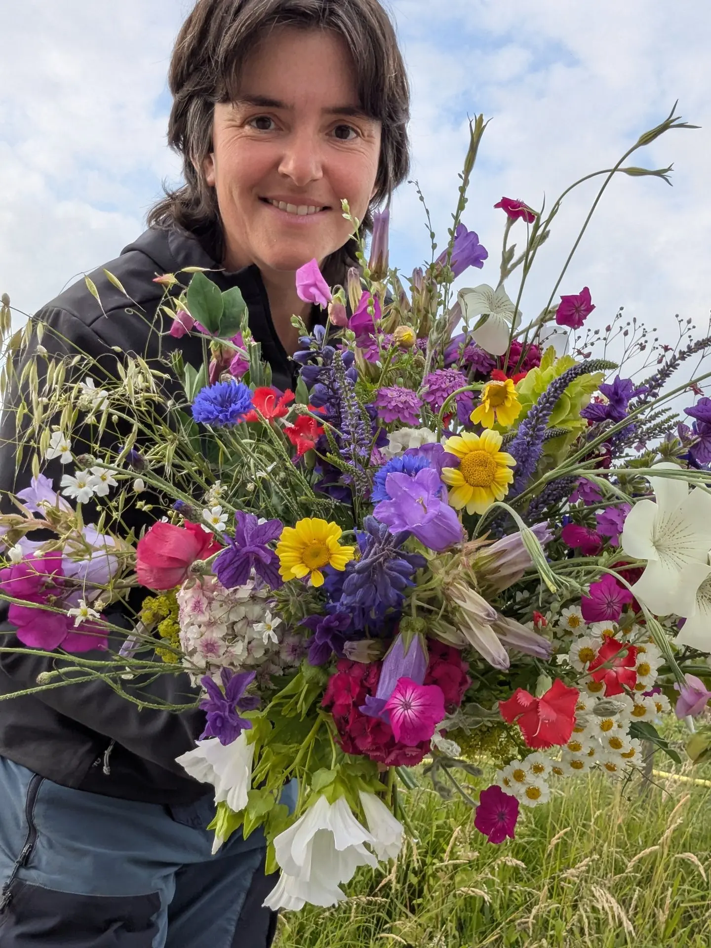 Ik ben Kathleen. Op dit veld teel ik ecologische snijbloemen voor mensen die graag bloemen in huis hebben en het fijn vinden om lokaal te kiezen.